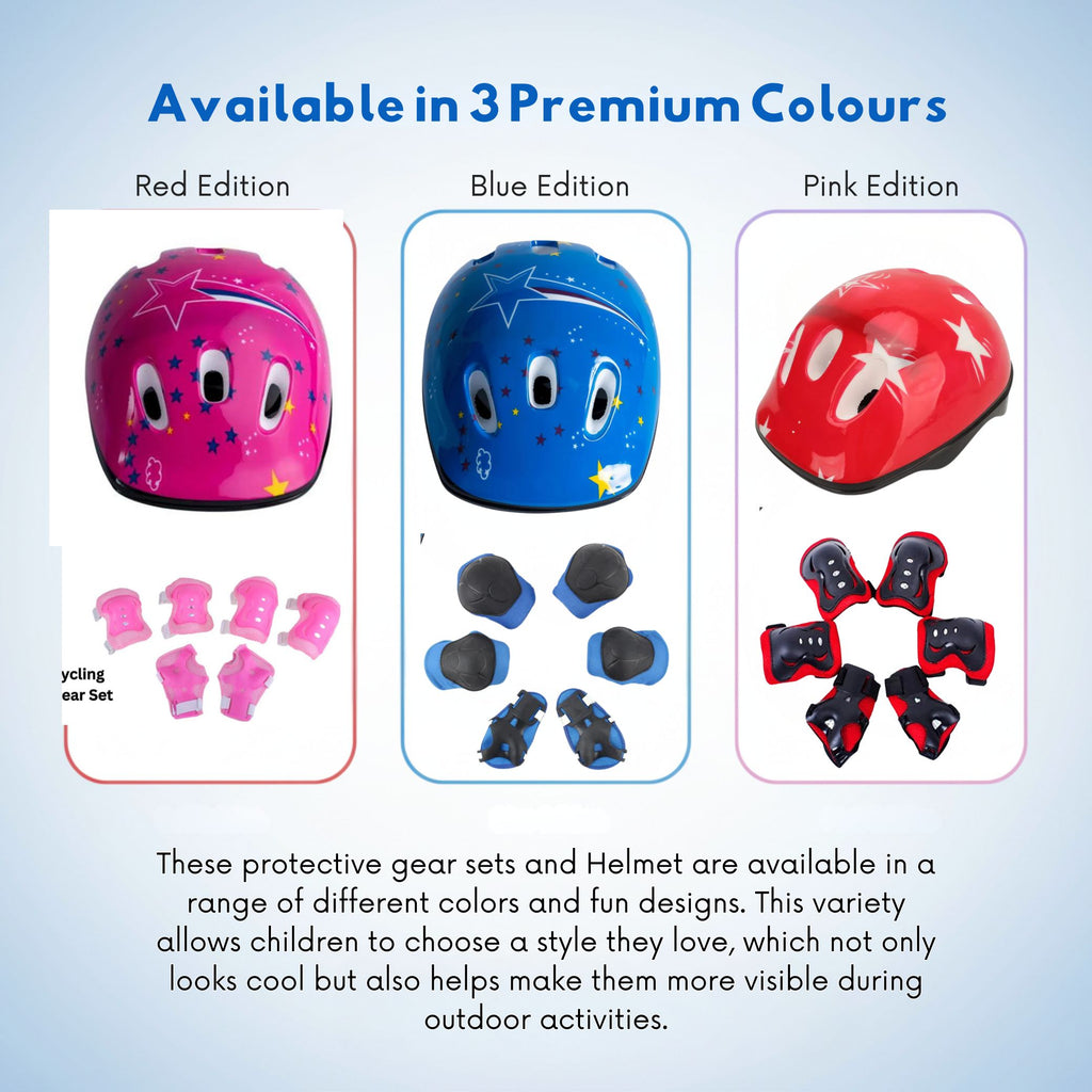 Gear up your little adventurer with the ultimate safety combo! This Kids Adjustable Helmet paired with a 6-piece protective gear set ensures your child stays safe while enjoying outdoor activities like cycling, skating, scootering, and biking.