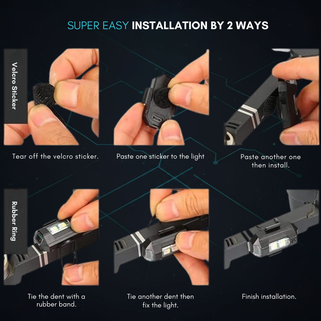 🔄 Easy Installation: Comes with rubber straps and adhesive pads for quick mounting on seat posts, helmets, or backpacks.